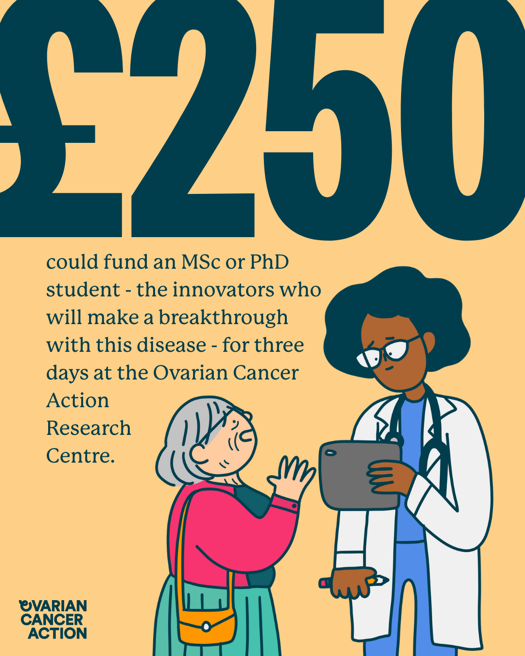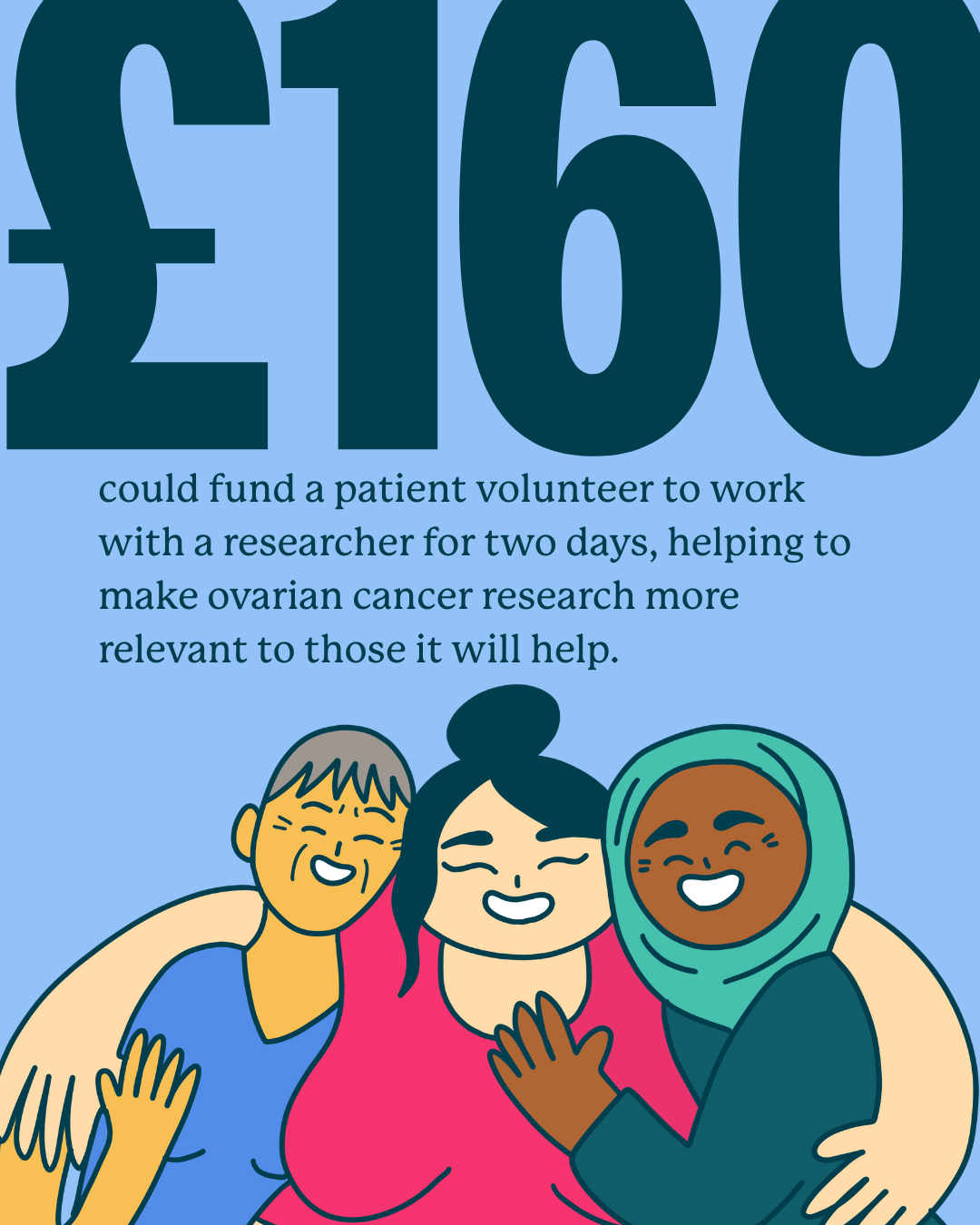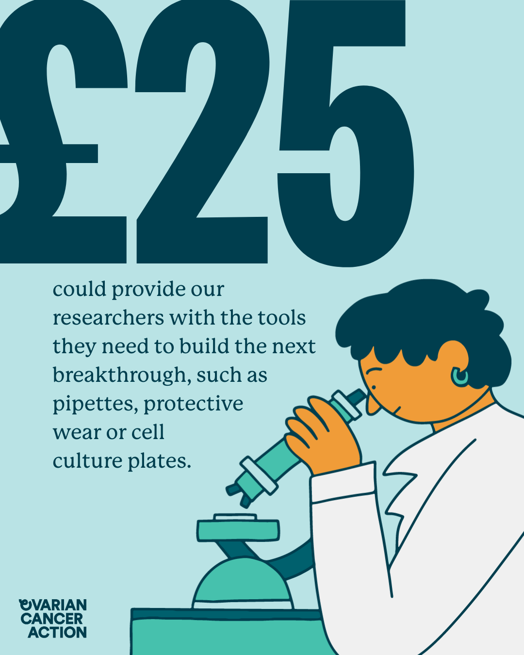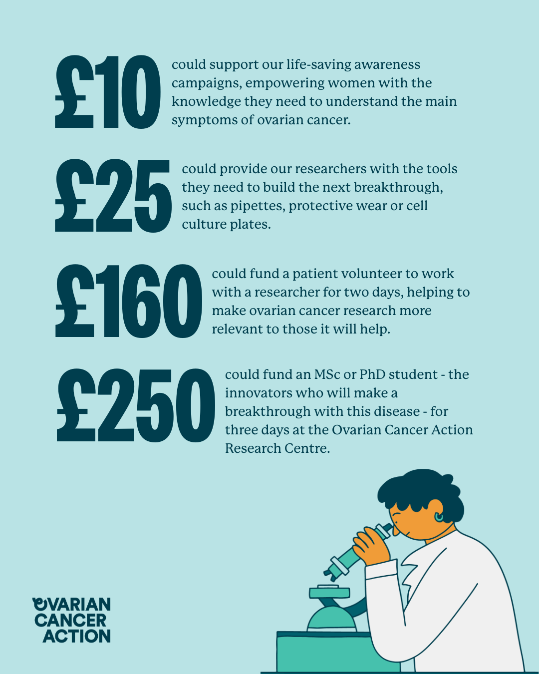 Let your loved ones know why donating to your challenge is so important. Share our handy social media posts throughout your challenge as an easy way to let them know why supporting ovarian cancer research is so important and where their money goes.